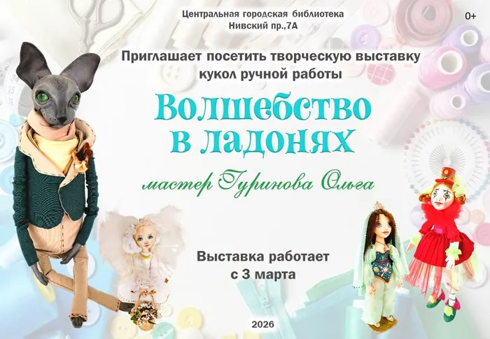 На выставке вы увидите уже готовых кукол, в каждую из которых вложена частичка души мастера. Приходите, чтобы познакомиться с этим тёплым миром и, возможно, найти вдохновение для своего творчества!