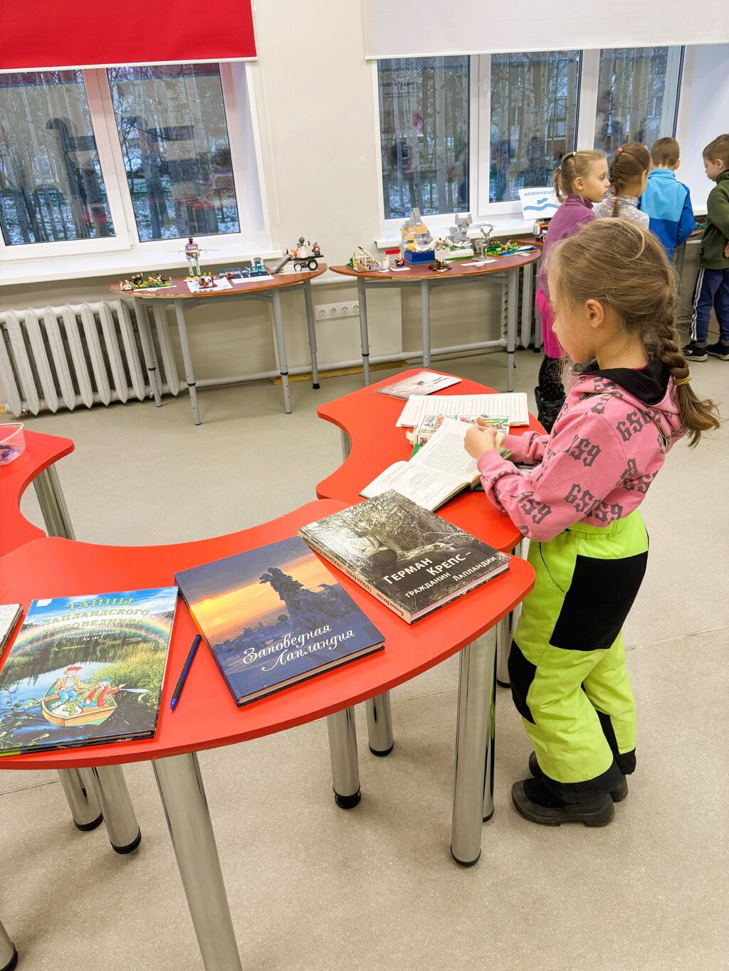 С 6 по 10 ноября для обучающихся 1-4 классов и воспитанников МБДОУ №6 «Сказка» были организованы экскурсии по выставке творческих работ, в рамках которых сотрудник городской библиотеки проводила эко-часы «Заповедная Лапландия». Дети знакомились с историей возникновения заповедника и учёными, которые стояли у истоков заповедного дела в Заполярье. А также, узнавали интересные факты о диких северных оленях, белках, росомахах, лосях, выдрах и бобрах.