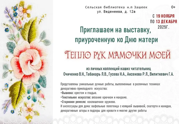 Приглашаем на выставку «Тело рук мамочки моей» с 19 ноября по 13 декабря 2025г